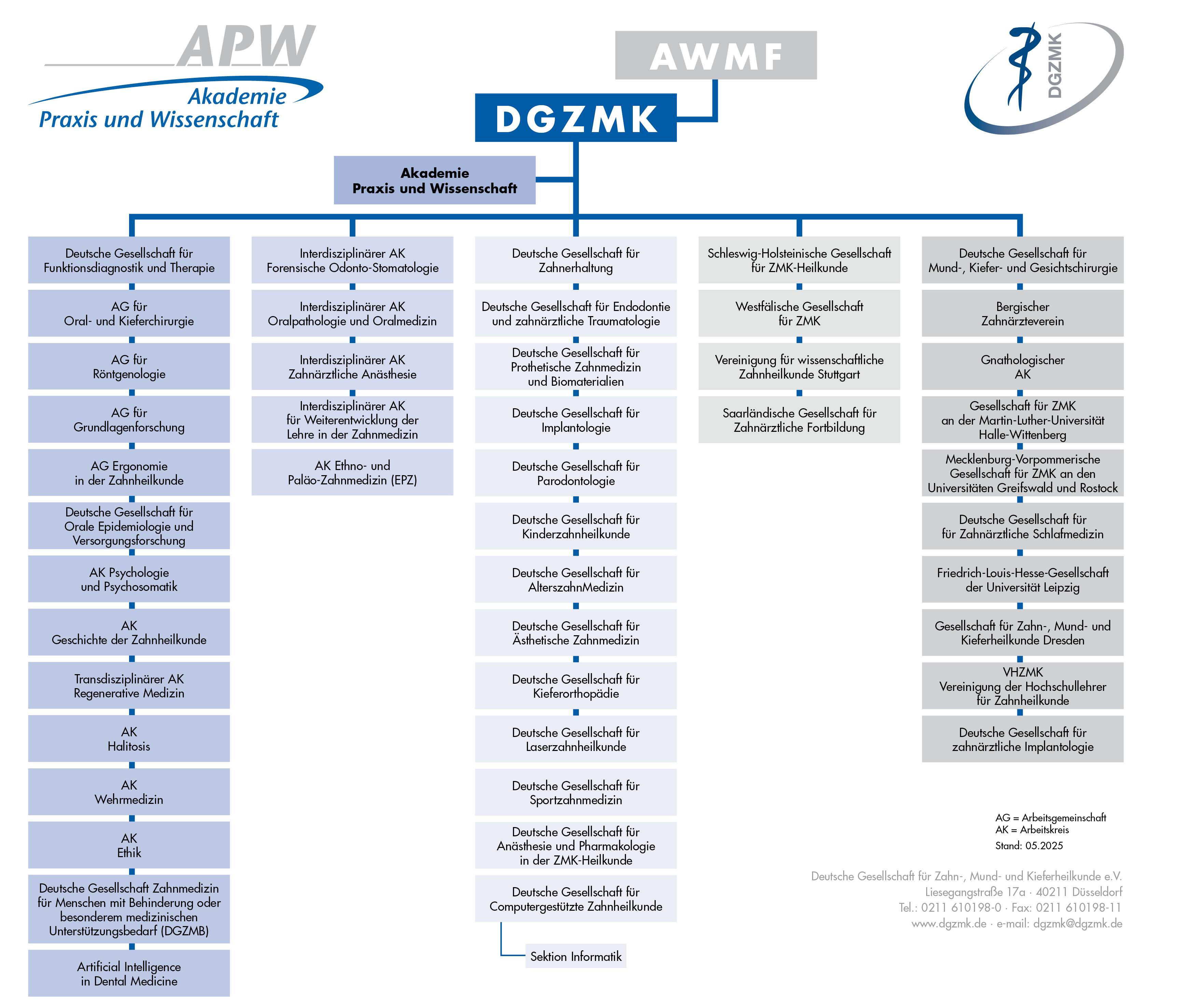 Die Deutsche Gesellschaft für Zahn-, Mund- und Kieferheilkunde (DGZMK) wurde im Jahr 1859 gegründet und zählt damit zu den ältesten medizinischen Vereinigungen in Deutschland. Heute versammeln sich unter dem Dach der DGZMK mehr als 22.000 zahnärztliche Mitglieder in 35 wissenschaftlichen Fachgesellschaften, Arbeitskreisen und Arbeitsgemeinschaften.